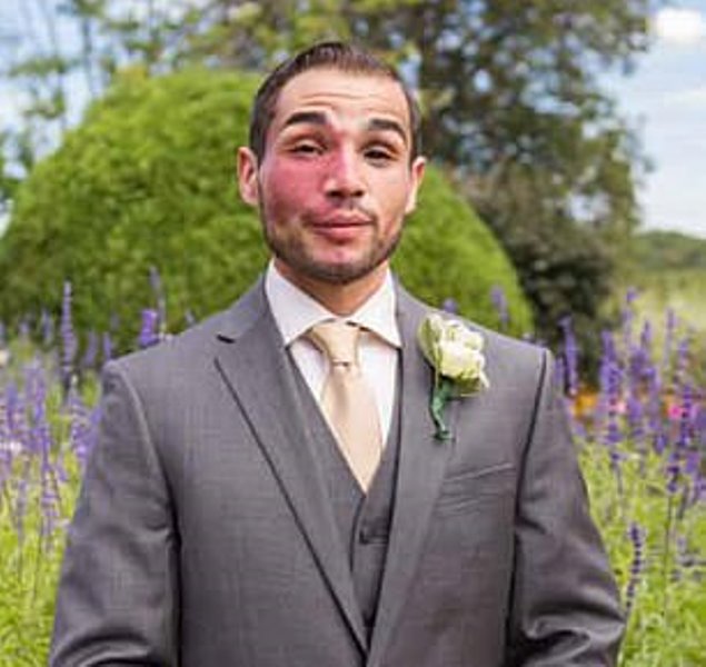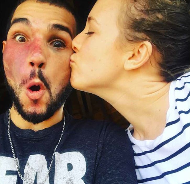 The father-of-one has a large red birthmark that covers almost half of his face.