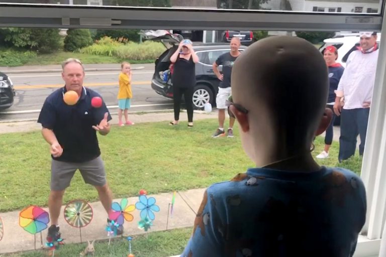 Strangers from his local community are showing up in his front yard daily to greet and entertain him.
