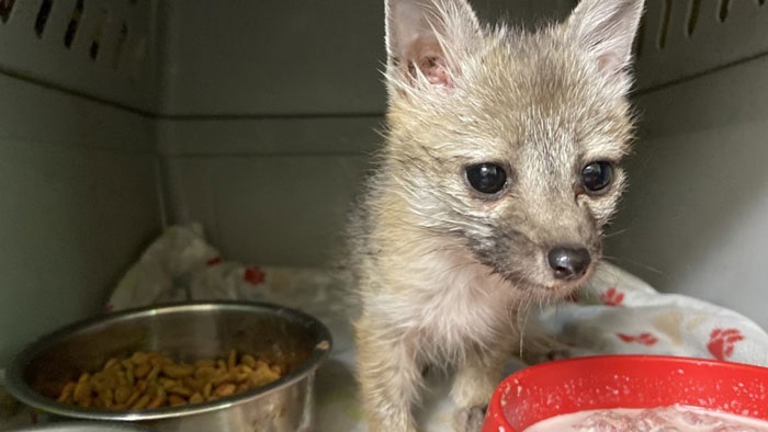 According to Khymberly Lewus of the SWCC, the fox had been syringe-fed for days until it remembered how to eat on its own.