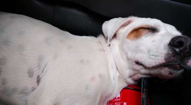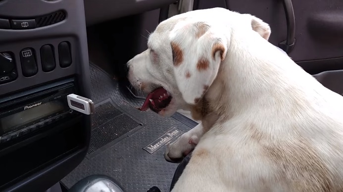 “He settled on the car floor and slept. He seemed relieved to find a safe place to rest.”