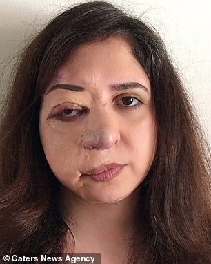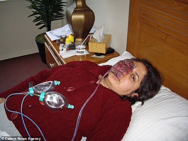 She had skin-grafts on her check, nose and on her eyelids to make her face look more natural.