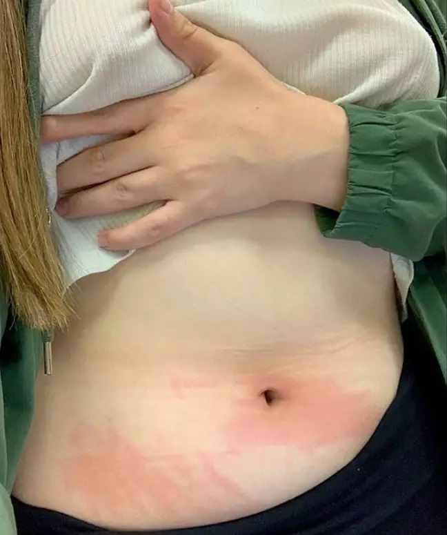 A young woman has spoken out about her rare condition and explained she develops itchy rashes every time she showers, cries, sweats, or drinks water.