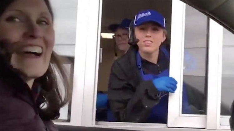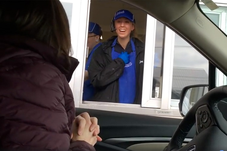 In a video making the rounds on social media, Michelle Floering, an educator at Grand Traverse Academy in Traverse City, Michigan, showed up at the drive-thru window where high school senior Kaitlyn Watson works. While restaurants have closed their dine-in areas, a lot are still offering drive-thru or takeout options.