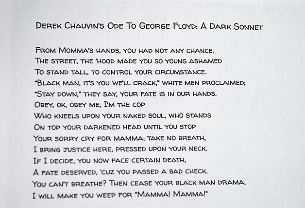 The teen had written a sonnet called ‘Derek Chauvin’s Ode to George Floyd: A Dark Sonnet.’