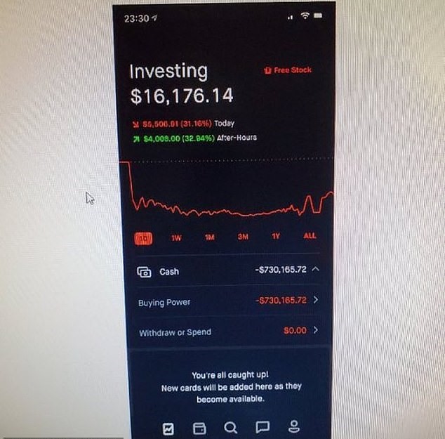 A 20-year-old college student took his own life after seeing a massive debt in his account on a stock trading app.