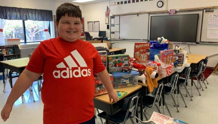 Philadelphia Elementary School shared some photos on Facebook and wrote: “Last week, one of our Warriors, Daniel Hunt, lost all of his belongings in a house fire. His third-grade teachers and classmates started a secret toy drive for him to replace the toys he lost.