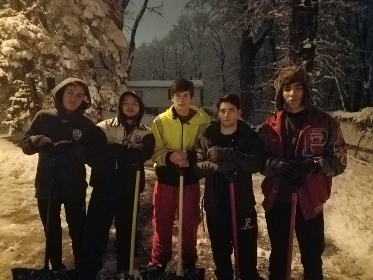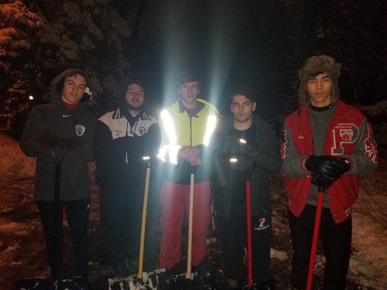 Patrick’s dad, Peter, took to Twitter and said: “Snow Angels disguised as PHS Srs [seniors], Justin, Pat, Chris, Tyler & Amon got up super early 4.30 (really never slept) to shovel a driveway for a neighbor who needed to get to dialysis.”