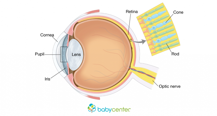 When a fetus is growing, the optic nerve is one of the first parts of the ocular system to start developing. During the fourth week of pregnancy, cells from the developing brain tissue start to form two optic nerves. Other cells also start developing into what will become the lens of the eye, which help babies focus on things both far and near.