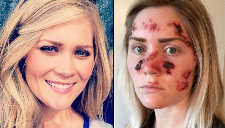29-year-old Tawny Willoughby developed lesions after using tanning beds 5 times a week. The mother-of-one wrote on Facebook: “This is what skin-cancer treatment can look like