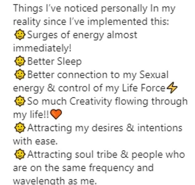 She said that it also improves her physical health and energy and also gives her a better sense of control over her body. She even says that ever since she has started practicing it she has been able to attract all kind desires and interests she has.