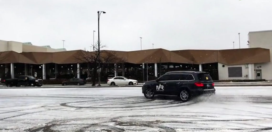 While some of the boys were in the store buying the toys and loading them in the Armored cars, some thrill-seeking supercar boys decided to take advantage of the vast snow-covered parking lot for drifting their amazing machines.