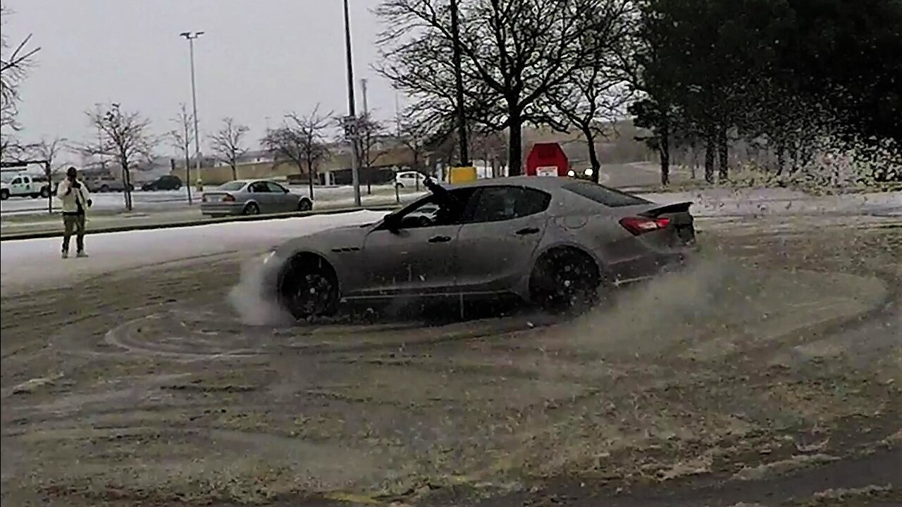 With all that snow everywhere, including the parking lots and all the roads, it is a great opportunity for car enthusiasts to fulfill their desire of drifting.