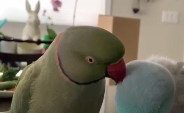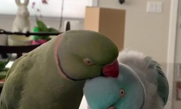 The two parrot brothers also indulge in kissing, cuddling and grooming each other, thereby solidifying their bond.