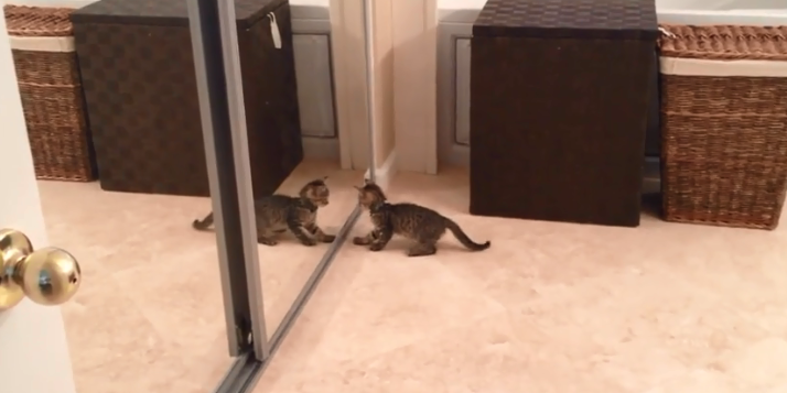 No matter how sharp an animal kid must be, it is always confusing to see their own reflection. It is the kittens who always react after seeing themselves in the mirror for the very first time.
