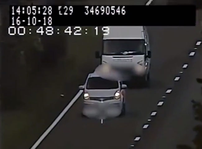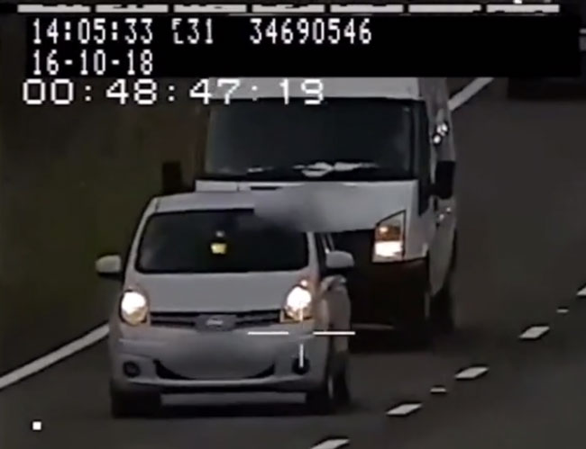 The footage released by police shows a white Ford Transit van driving too close to the car in front of it.