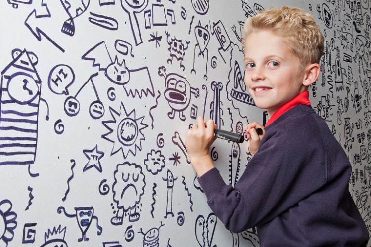 Kids often like doodling stuff everywhere, from notebooks, scraps of paper, even on tables and walls (and thus are graffiti artists born).