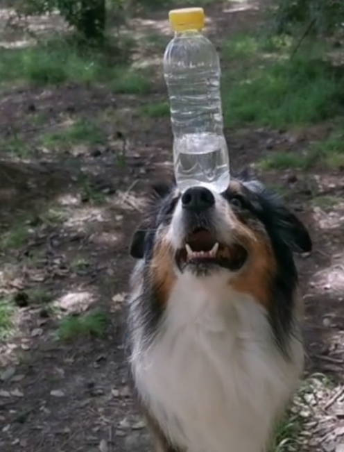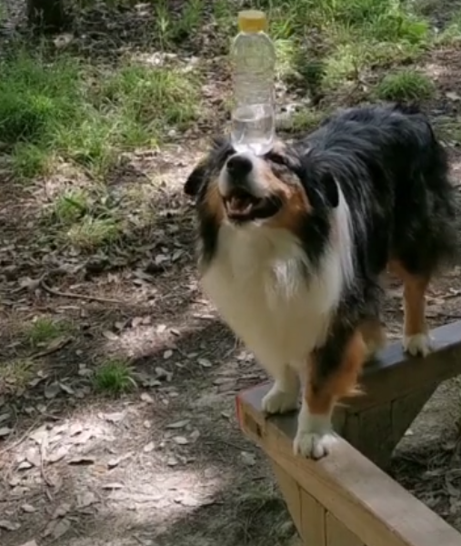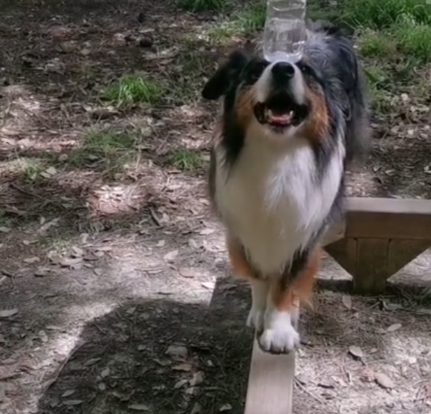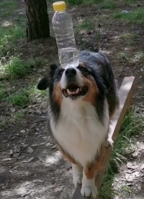 Recently, an Australian Shepherd amazingly balanced a water bottle while walking on a thin beam at a 90-degree turn. He didn’t even let the bottle fall once and balanced it flawlessly while walking on such a thin beam.
