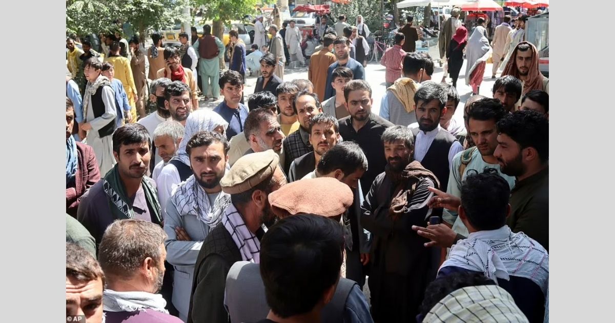 A series of photos show huge crowds of desperate Afghans who can be seen queueing outside a bank in Kabul.