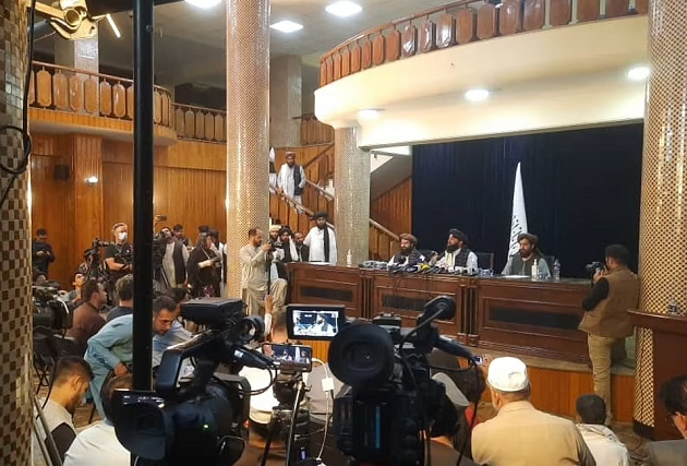 A spokesman for the Taliban held a news conference in Kabul and vowed that Afghan women will not be persecuted.