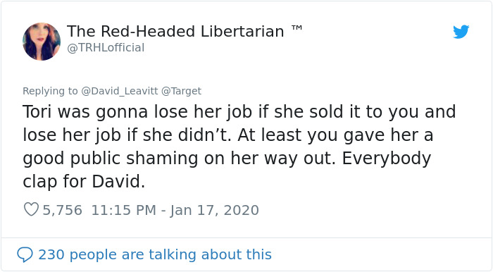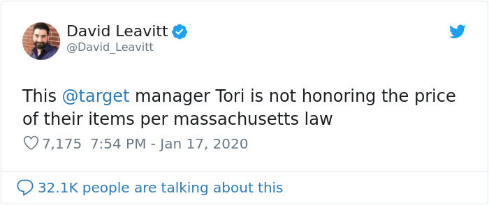 Last week, a Target employee was blamed when one customer tried to take his case to Twitter. The customer is verified by Twitter as a journalist. The Massachusetts resident started a Twitter thread on Friday when a Target manager refused to honor a toothbrush that Leavitt thought was priced at one cent. Leavitt didn’t notice the price was actually for the display and ended up calling the police and publicly shaming Target employee Tori Perotti.