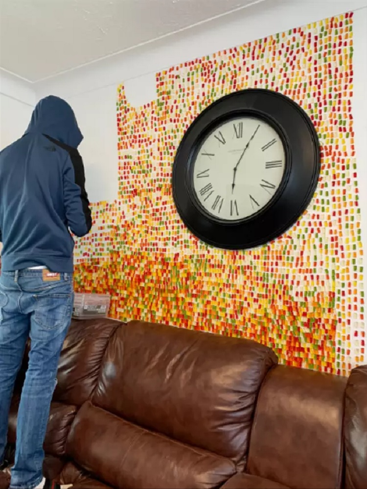 A woman who had asked for her partner to “tastefully” decorate their living room wall got pranked after the man covered the wall in 6,000 Gummy Bears.