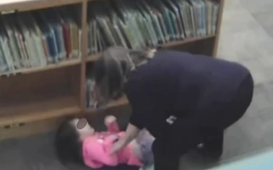 An elementary school teacher was fired after she was caught on camera kicking and grabbing a 5-year-old because the kid hid behind a bookshelf during library class in kindergarten.