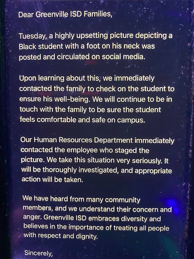 The school district is now investigating the matter and has released a public statement regarding the picture that had been spread around.