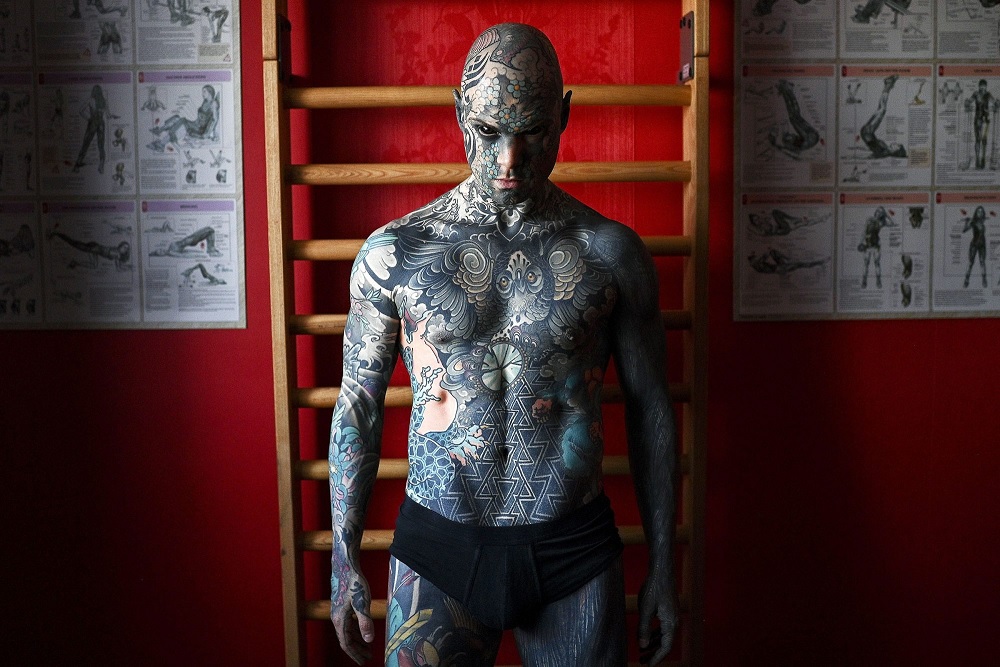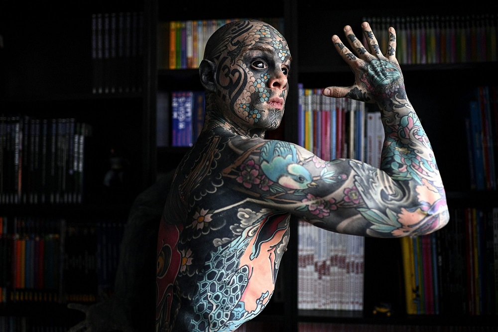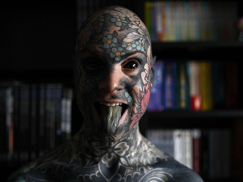 Besides getting his body covered in tattoos, the teacher also had the whites of his eyes inked black.