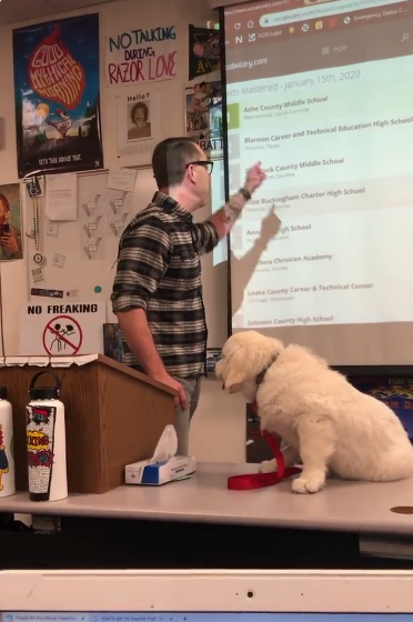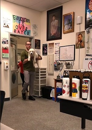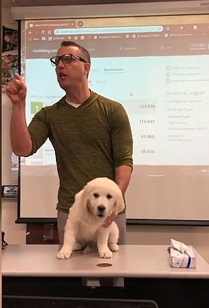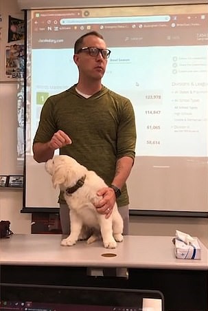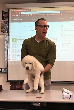 In a failed attempt to try and motivate his students, Price brought a puppy, which is believed to be his dog, into the classroom to show it to the students.