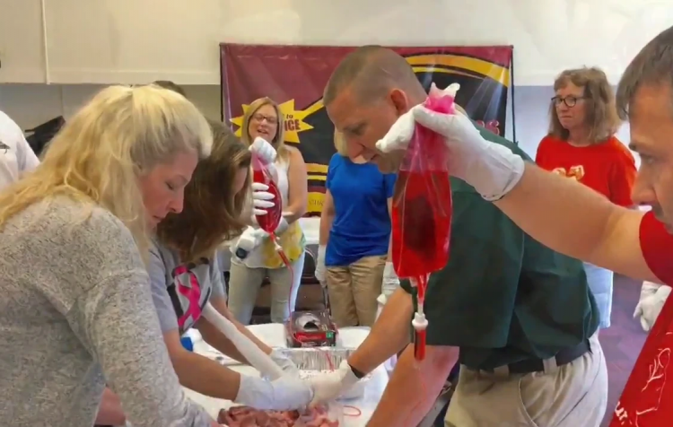 Other teachers were also being taught how to clear a victim’s airway after a shooting head wound.