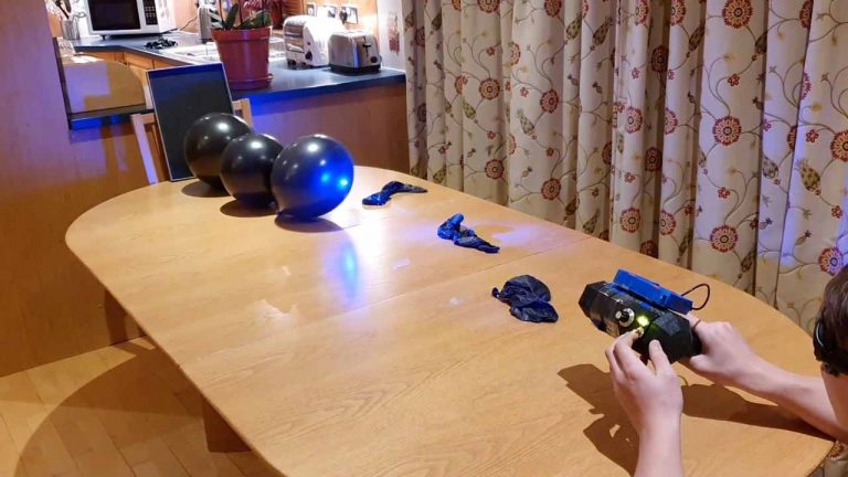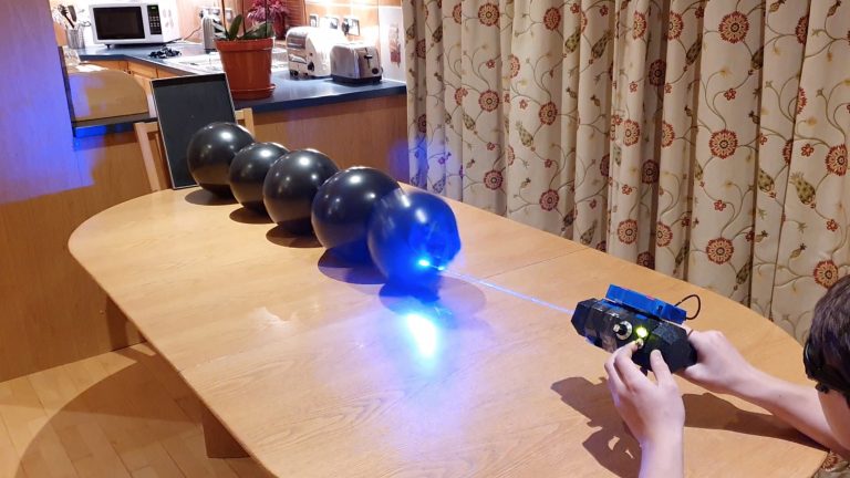 Gabriel spent six months inventing the powerful laser gun that can explode balloons, light matches and even melt metal.