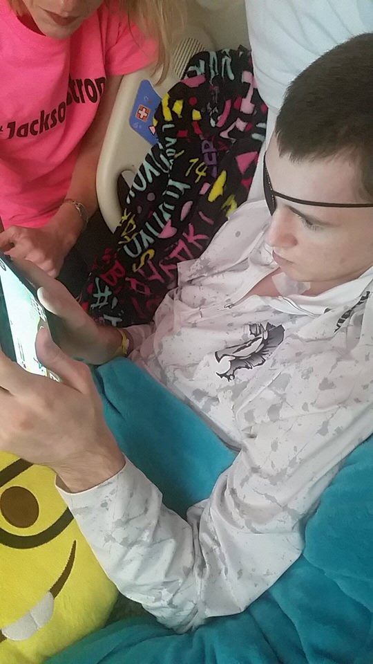 Jackson’s family shared the video on his Facebook page, announcing the moment the teen spoke.