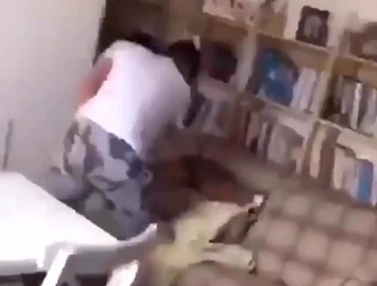 The disturbing video has been shared on social media and showed 18-year-old Eden Chemo clenching his fist before punching the poor animal on a sofa.