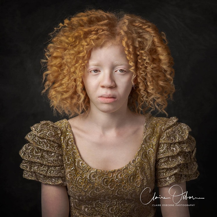 This is because she has Oculocutaneous Albinism Type 1 and this affected her skin, hair, and eye colors.