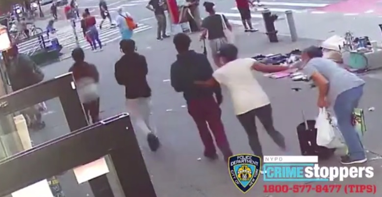 The incident happened in Manhattan, New York City, where a group of three teens was caught on surveillance camera accosting a 74-year-old woman.
