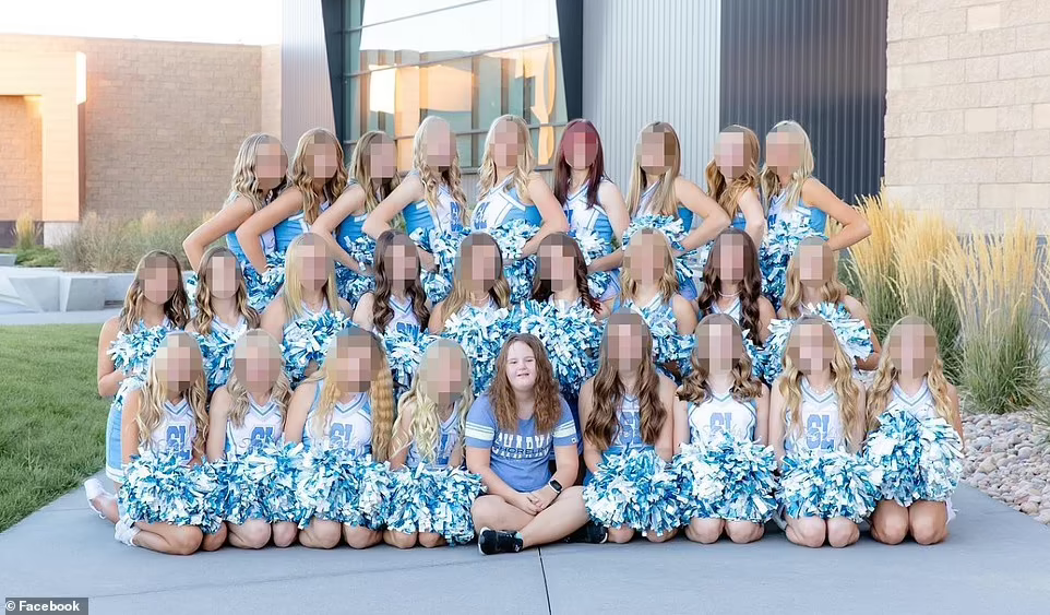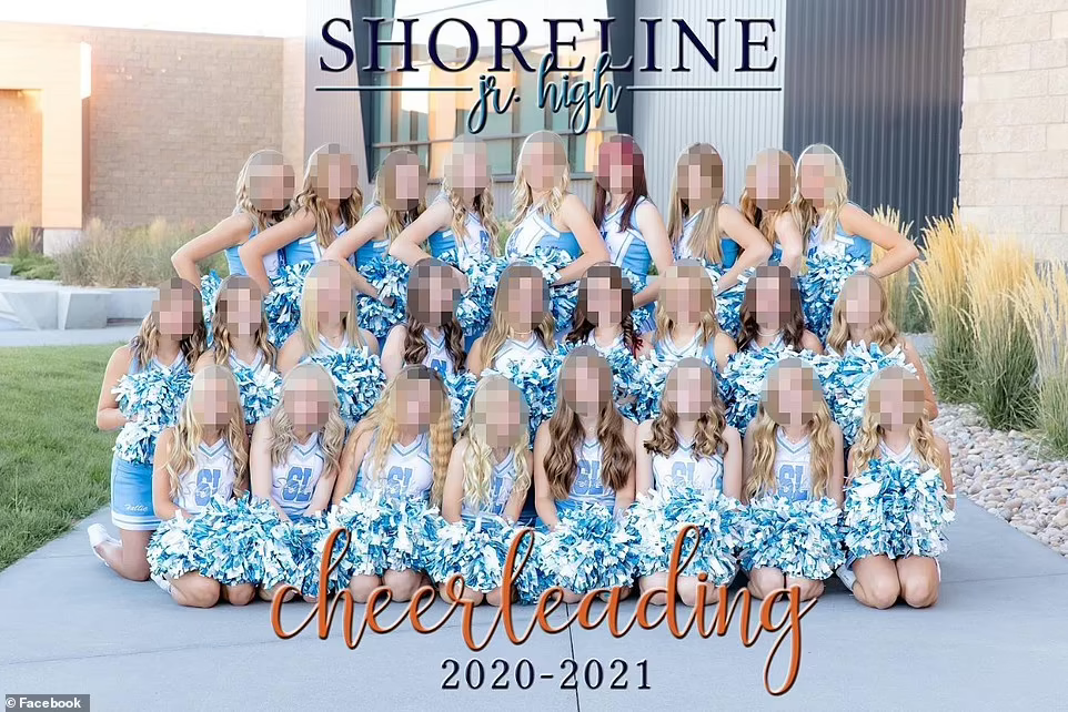 Morgyn Arnold, 14, poses with her cheerleading squad located at Shoreline Junior High School. The school had selected a photo that did not contain her appearance for the school yearbook.