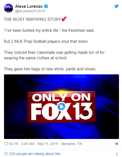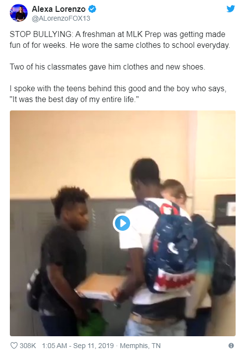 Two boys of MLK College Preparatory High School, Memphis, realized how they have unintentionally been bullies to a kid and try to make it up to him by giving him the best thing possible.