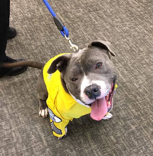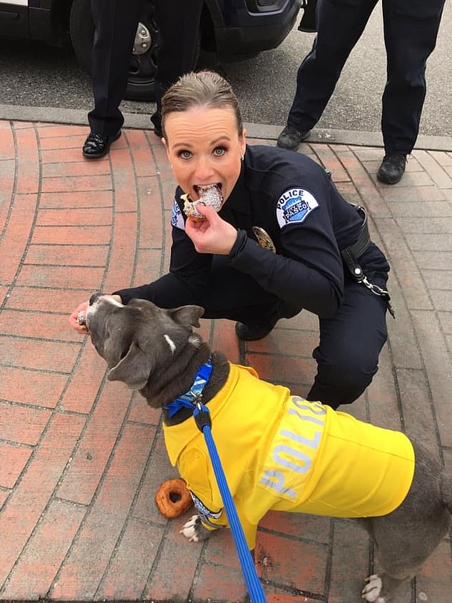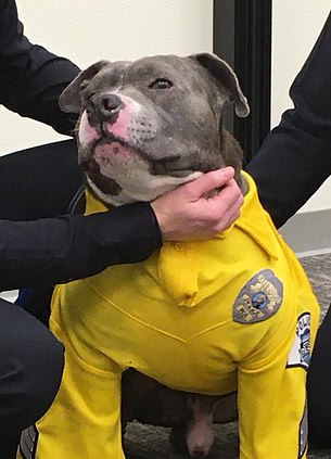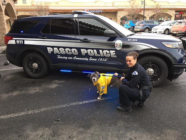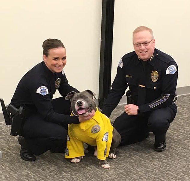 Washington-based Eddie the pit bull appeared content as he was honored by the Pasco Police department who accepted him in their K9 team for a day after the pooch was given just months to live due to his inoperable tumor.