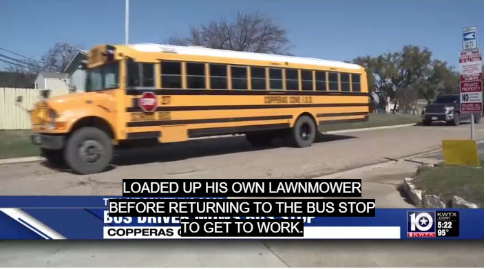 Longtime bus driver Jerry Martin brought out his very own lawnmower to cut the grass, and his efforts were appreciated in a Facebook post by the Copperas Cove Independent School District.