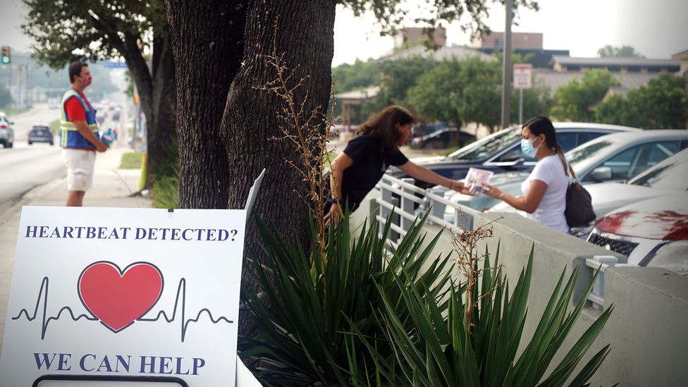 The new Texas law bans abortions upon the detection of the first fetal heartbeat sound, which is at about six weeks.