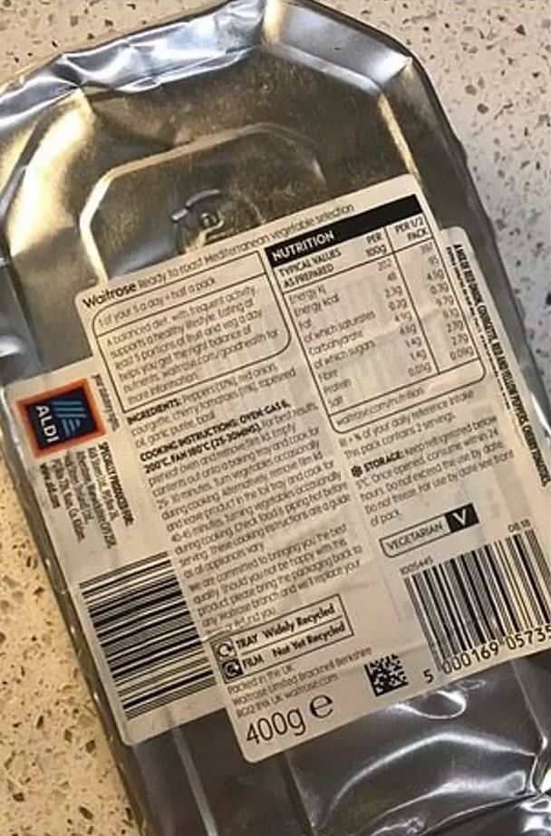 However what increased the amount of confusion was the fact that this package which had been ordered by the Ocado delivery did bear a seal of the Waitrose roast vegetables, but at the back of the package, the description read as “specially prepared” for Aldi.