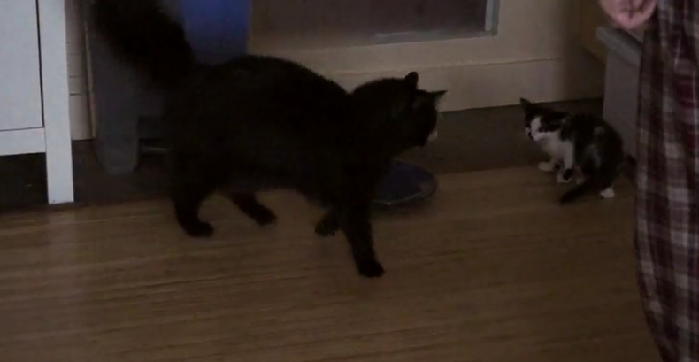 The owner was caught off guard and ended up getting a couple of scratches. This time Kody got too aggressive, so his big sister Shorty had to come to the rescue and put Kody in the right place.