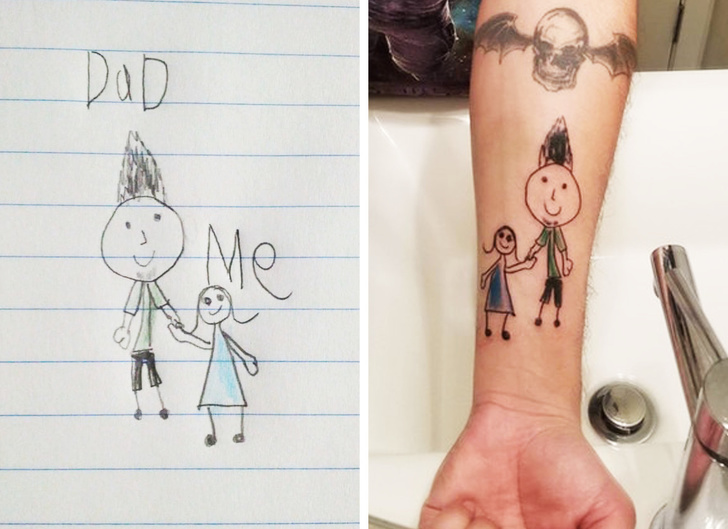 #10. “Decided to get a tattoo of my child’s drawing.”