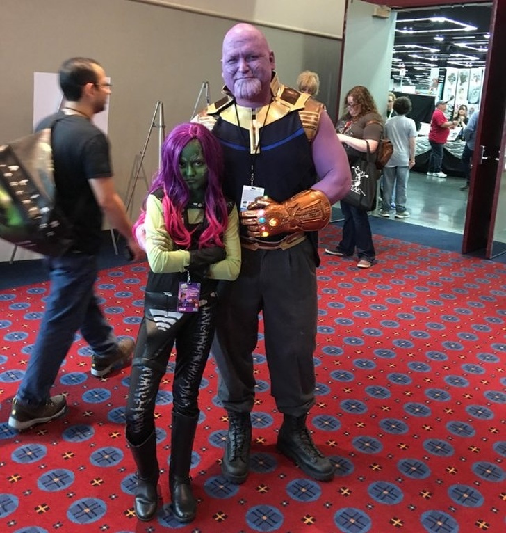 #15. “Saw this father and daughter cosplay. The little girl was all smiles until picture time, then she got into character.”