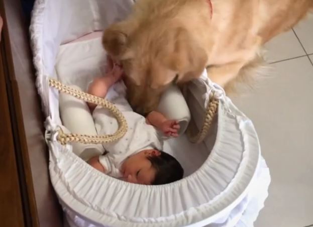 It is such a heartwarming moment to see the dog lick the newborn baby and love her like its own. There are various moments you can see in the video that will make you realize how good it is to have a dog as a company at home.