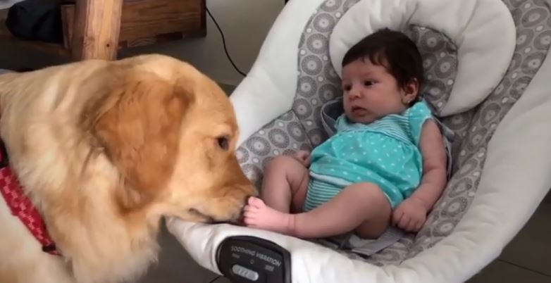 Recently a mother introduced her newborn baby to their golden retriever, and it was terrific.