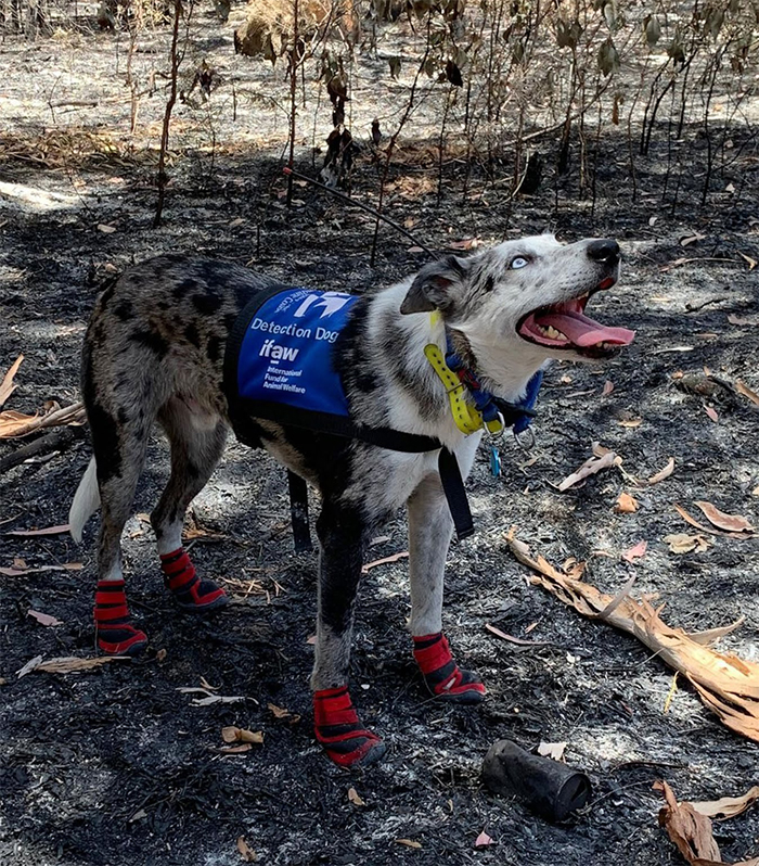 According to International Fund for Animal Welfare, “Our koala detection dog Bear is bringing a glimmer of hope for koalas suffering from Australia’s deadly bushfires—but these animals need more heroes to save them from this ongoing disaster.