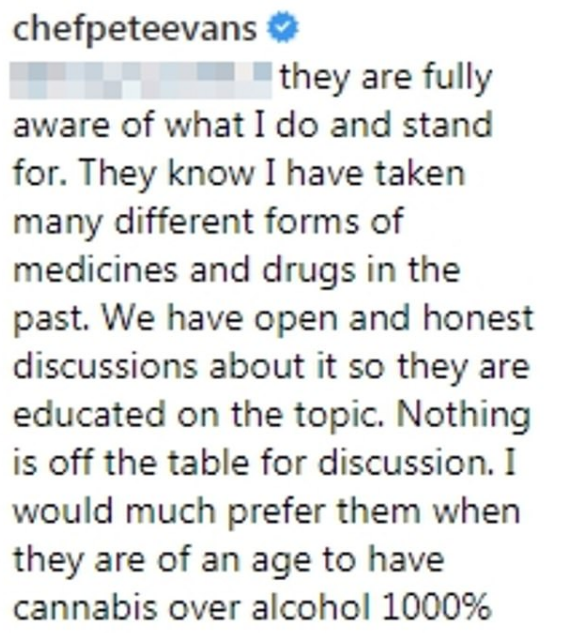 Pete in reply has very openly said that both his daughters are aware about cannabis and he also has an approval of them using it once they are of the appropriate age.