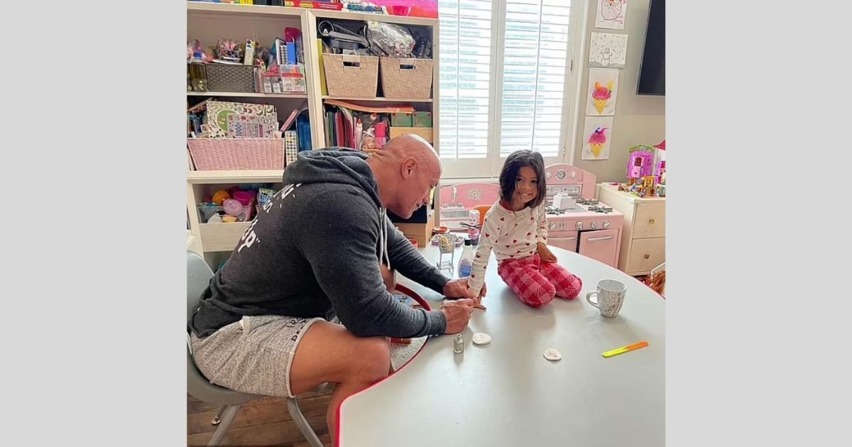 Dwayne “The Rock” Johnson, 49, has shared an adorable photo on his Instagram account painting his three-year-old daughter’s nails.