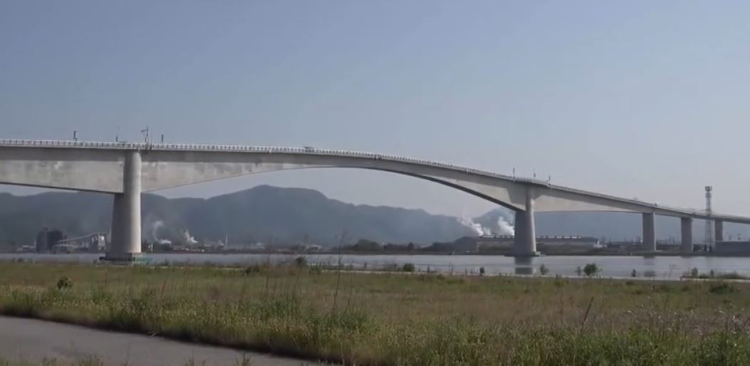 Eshima Ohashi is a 1.7 km long 11.3 meters wide bridge that runs from Sakaiminato in Tottori Prefecture to Matsue City in Shimane Prefecture.